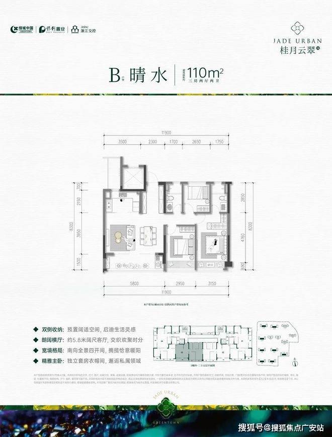 近11.9米的“独栋级”南向面宽,约5.8米的双开间“跑道级阳台”,每一个细节都是为了获取更多的阳光。