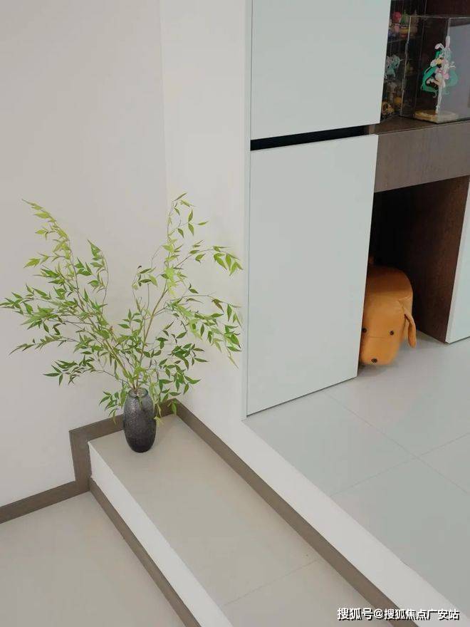 2、客厅与餐厅之间以台阶连接:用最原始的“高差”手段,以零占地的垂直维度实现分区,保留90%以上的视觉通透性。
