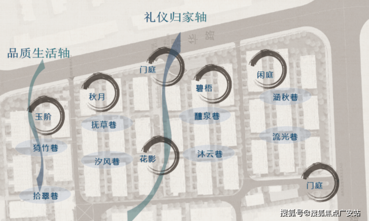 项目以错落有致的巷院布置形式,形成多个独立的居住组团和围合的景观空间,辅以景观隔离,打造“巷陌深深”的居住体验感。