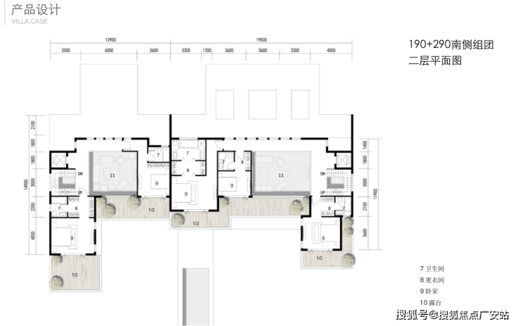 二层都是套房设计+露台+客厅挑空,190的二层是双套房、290的二层是三套房。