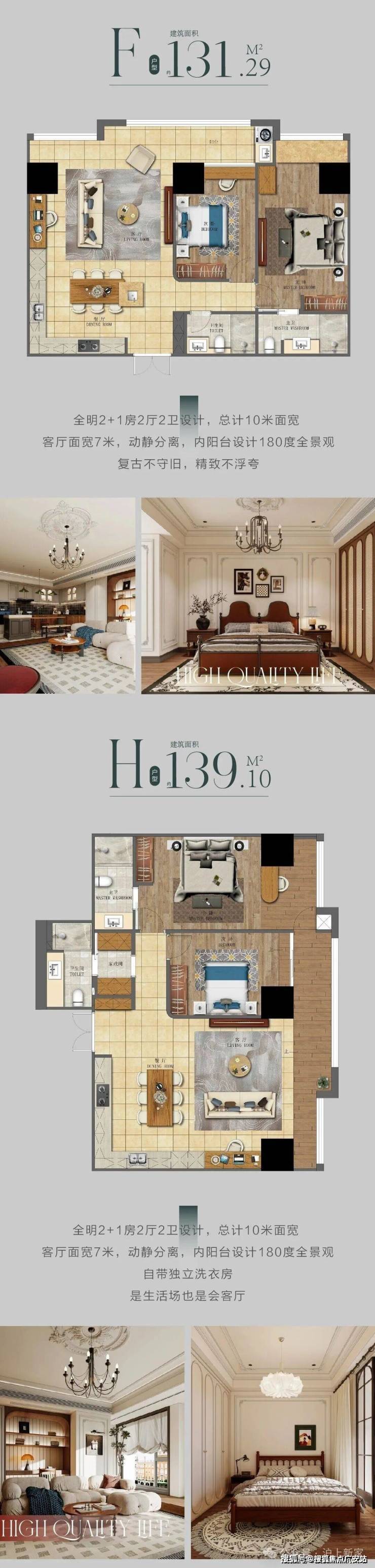 在售户型面积:建面约131-143㎡大平层,层高3.3米,270°落地窗