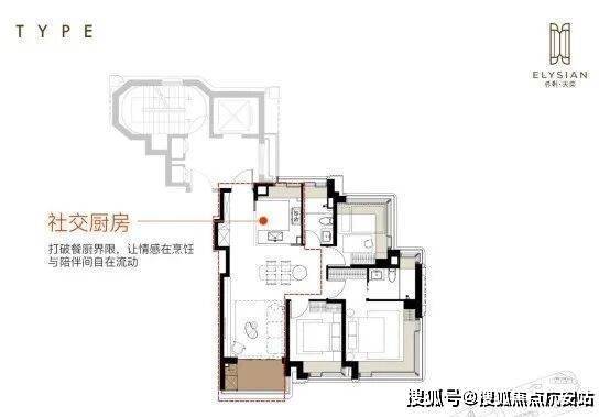 2.social厨房设计,开放式厨房水槽区转向餐厅一侧,杜绝消极空间让室内轻松连贯,也让情感交流、家庭互动在无界限。