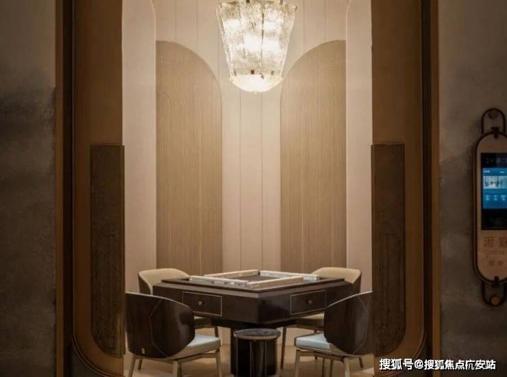 私宴厅&棋牌室承载了业主宴请、聚餐、洽谈、品茗、娱乐等多元社交场景。私宴厅当中悬挂的石材,来自项目团队多番挑选,来自一个奢石展馆里的孤品,不仅拥有昂贵的蓝色色泽,天生的羽毛状纹理更是罕见!