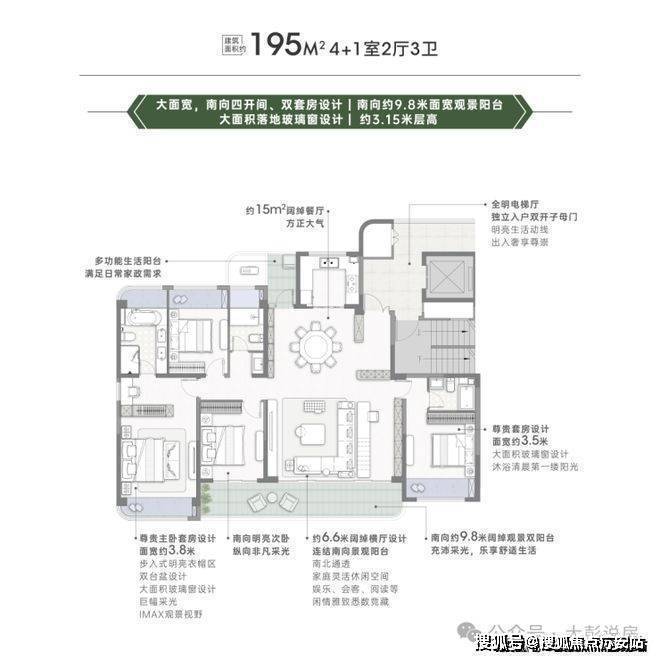五居室:建面195m²(南朝向),约312.5万/套;建面221m²(南朝向),约370万/套;建面319m²(南朝向),约575万/套。