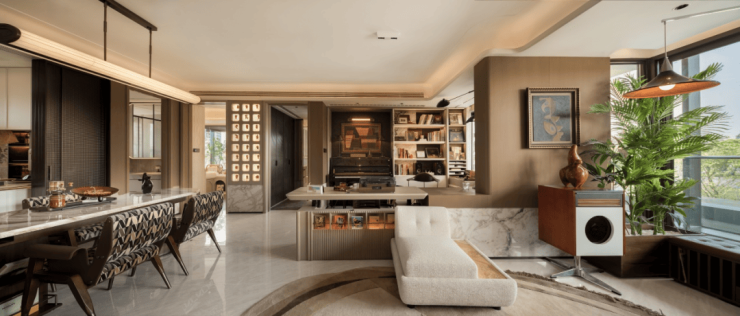 项目归家门庭采用石材,叠加铝板元素,构建出极具质感的空间和松弛氛围,令张江的归家仪式感焕然一新。