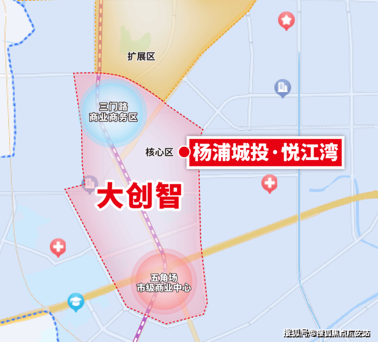 项目处于中部大创智核心区内,根据杨浦区规划,大创智和杨浦滨江、环同济、大创谷一样,是杨浦重点发展的四大区域之一。