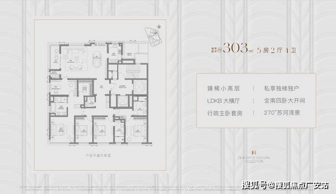 黄浦内环内、人民广场板块,上海建工集团“正黄浦”纯豪宅项目——【海玥·黄浦源】三期项目8、2号栋楼涵盖建面约94-402㎡多种户型,主力户型303平五房。