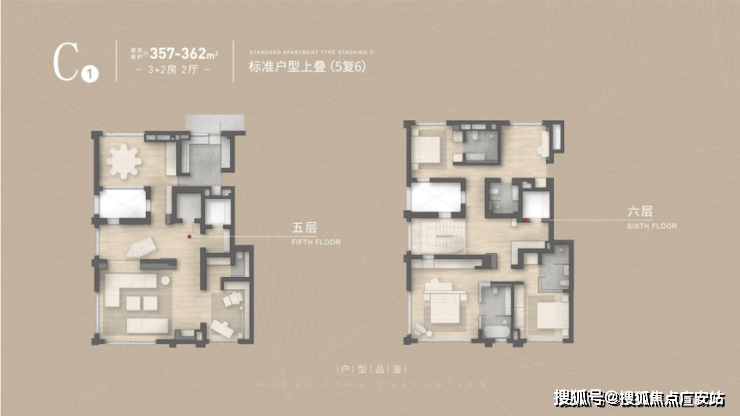 C1 户型(上叠):面积 357-362 平,单价 12 万,总价 4280-4340 万,附赠露台 60 平方左右。
