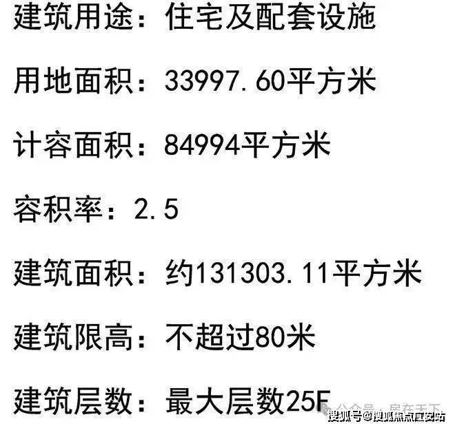 地块用地性质为普通商品房,容积率约2.5,限高80米,住宅套数下限867套,需配建5%以上保障性住房,中小套户型不得低于70%, 全装修比例100%!