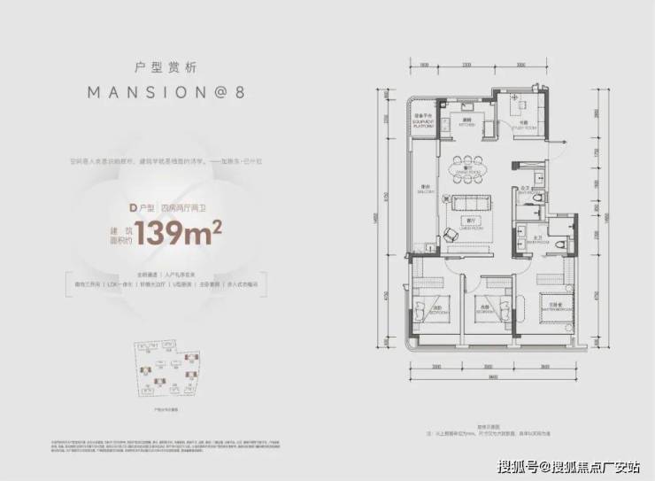 139㎡四房:四开间朝南,7.2米全景阳台,U型厨房+三分离双卫