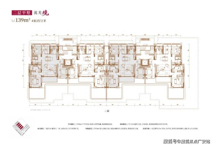 从内部空间体系来看,地上三层,层高分别是3.6米、3.3米和3.3米;每个单元一梯两户,每户均拥有类独立电梯厅;一楼带地下室及庭院,并通过创新退台式设计为二楼和三楼打造私家空中花园,形成户户有花园的墅居生活方式。