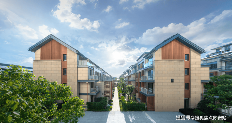 与园林景观对应,北辰观澜府联排樾墅采用了新中式建筑立面:大面积偏暖色干挂石材及铝板,兼具耐固性与美观度。而整个苏州只有极少数豪宅楼盘采用干挂石材作为小区外立面,足以看出北辰观澜府在产品打造上不惜成本的决心。
