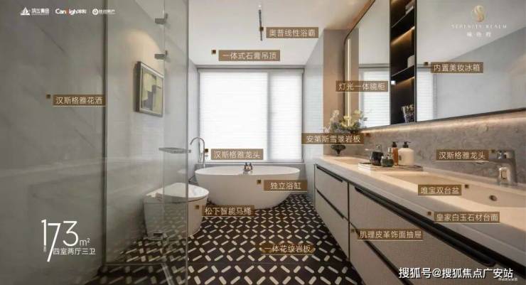 比如,日本东芝的中央空调,新风系统,德国博世的厨房六件套(含两台嵌入式冰箱),以及主次卫松下双智能坐便器,汉斯格雅五金,唯宝台盆等,而且厨房单独配置了东芝空调。