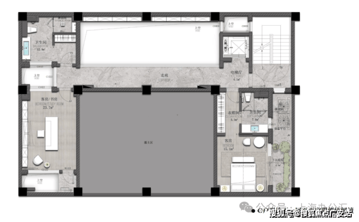 ⑤地下室设计6米挑高客厅、附有下沉式花园采光天井、豪华装修交付标准、带电梯