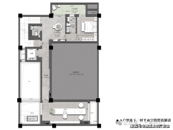 地下室6米挑高客厅 + 下沉式采光天井