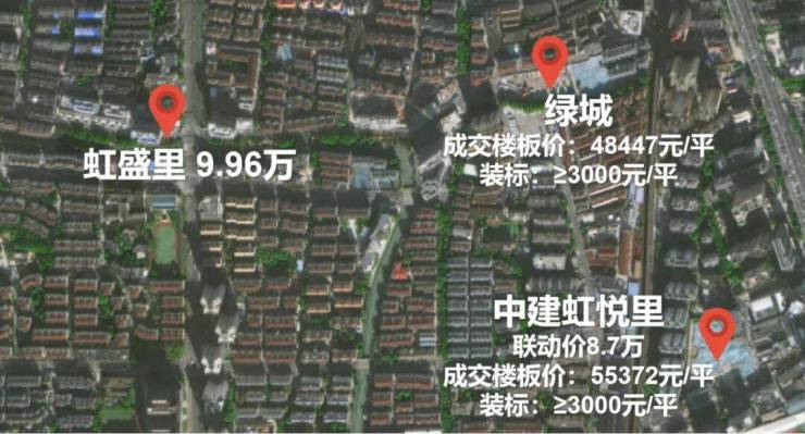 此外,同样是不低于3000元/平的装标,仅仅是楼板价就要低于中建虹悦里。