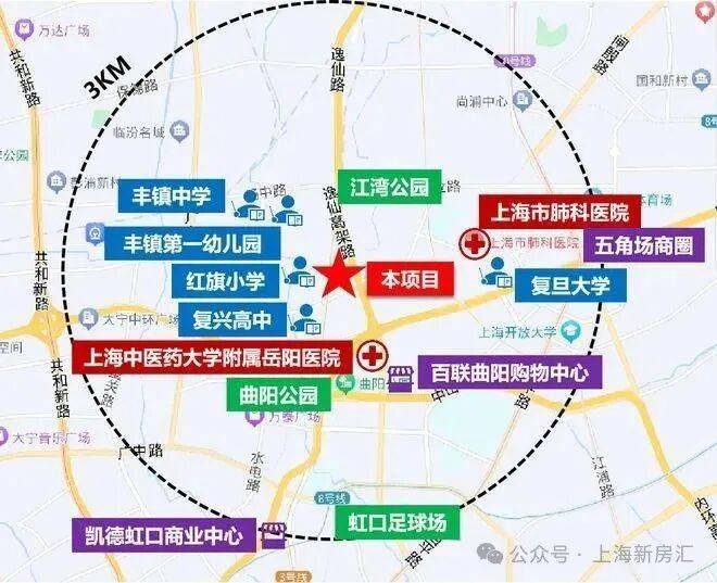 医疗方面,上海中医药大学附属岳阳中西医结合医院(三甲)距离项目直线约1.5公里;同济大学附属上海市第四人民医院(二甲)距离项目直线约1.6公里。