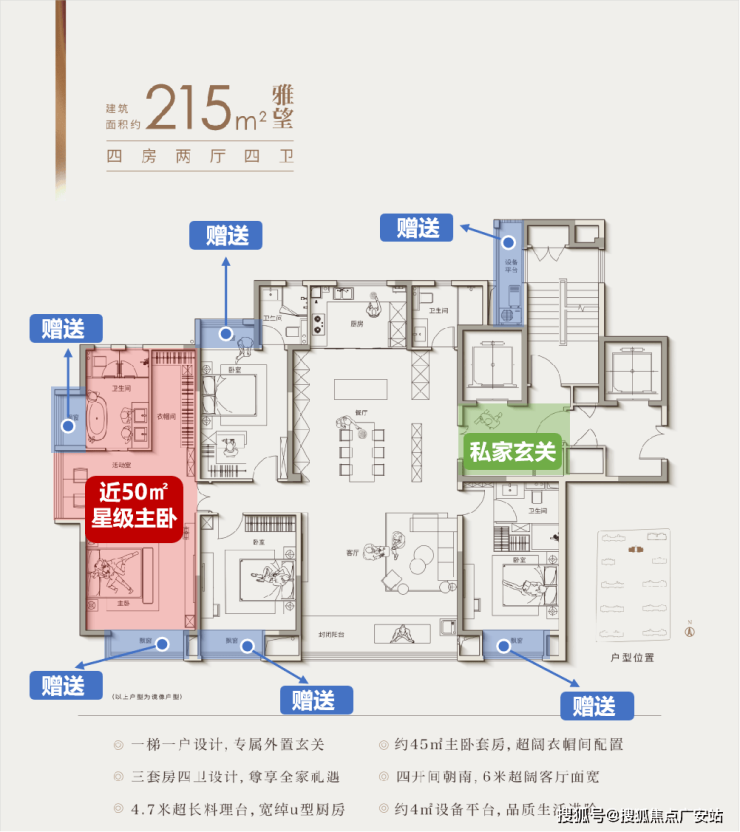 包括市面上不常见的一梯一户、超配设备平台、双套房三卫生间设计等等,从空间到功能,堪称昆山大平层里的教科书