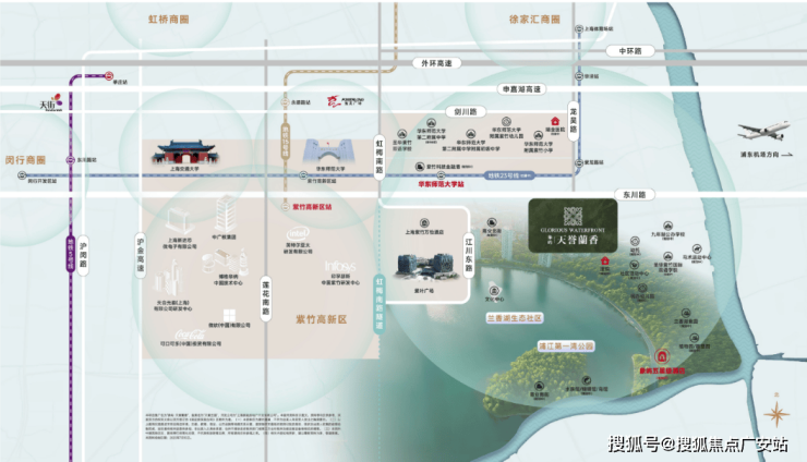 此外,近享兰香湖公园、华师大附属紫竹小学、瑞金医院闵行分院、赛艇俱乐部、马术运动中心(规划)、15/23号线(在建)双轨枢纽站点、紫竹生活广场等,触手可及的生活配套,让品质生活悦然眼前。