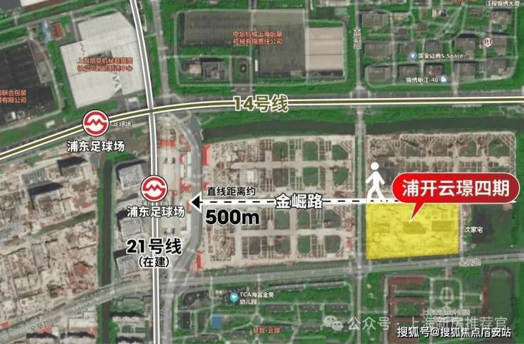 项目直线距离14号线浦东足球场站仅约350米,步行5分钟即可进站。