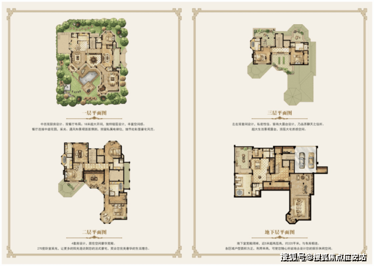 高配:大花园、大露台、下沉式庭院、全明地下室、私家电梯、外加多部车位