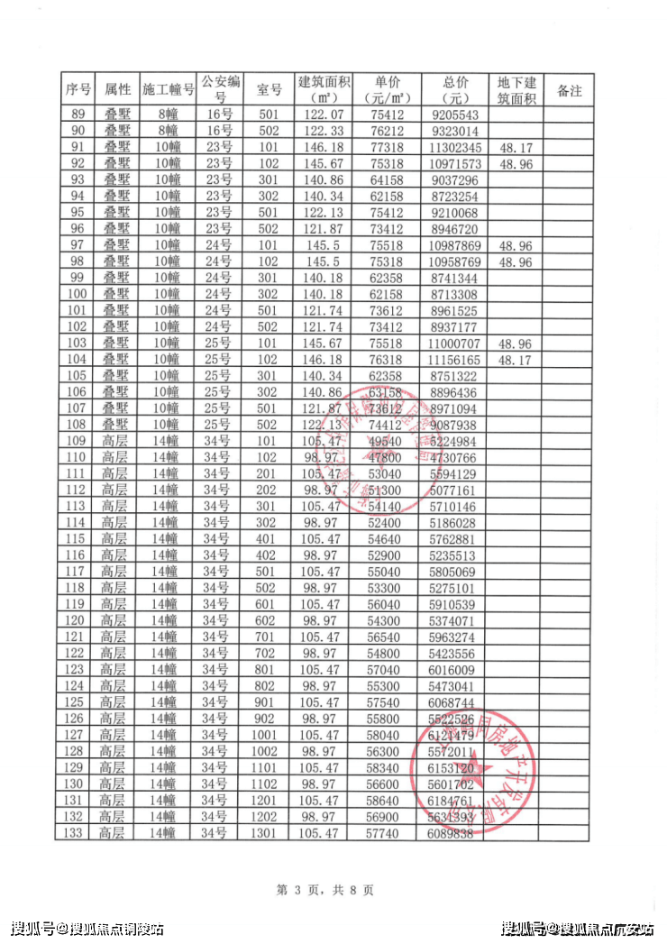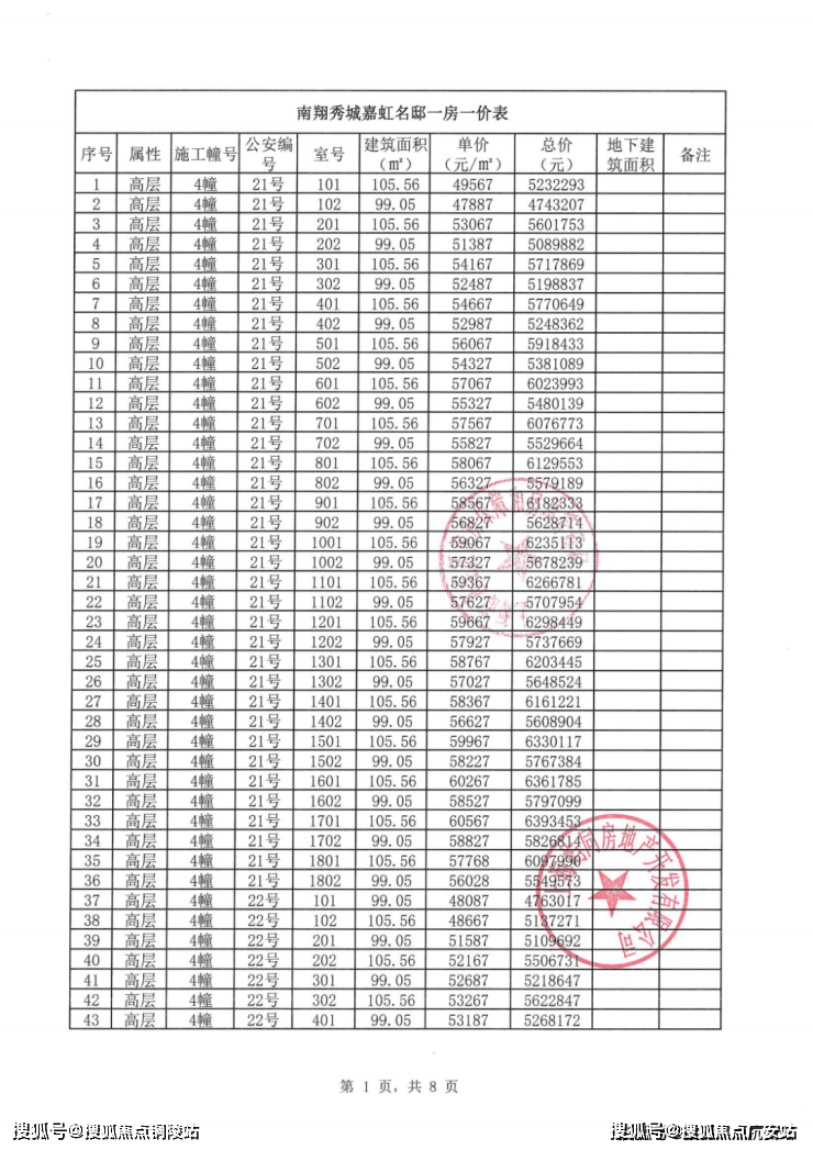 虹桥嘉悦府项目一房一价表: