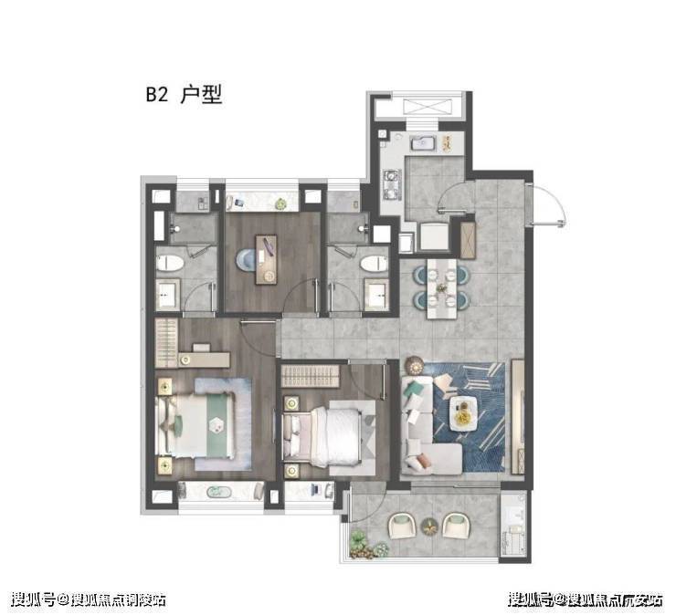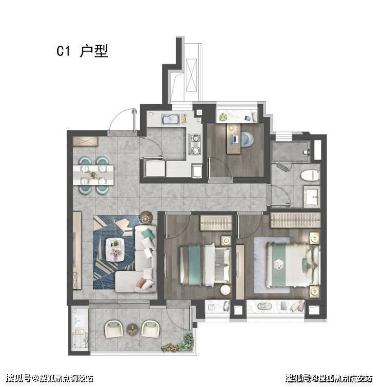 建面约105㎡为5.1米宽厅设计外接大阳台,这对黄金组合一方面撑开户内尺度,另一方面也让通风和采光俱佳。