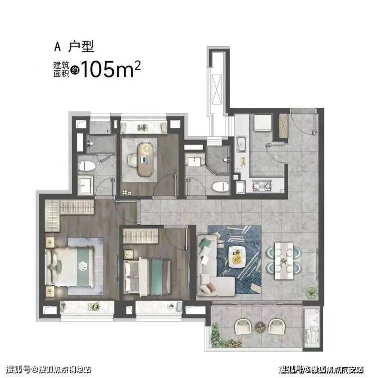 建面约105㎡3房2卫▼