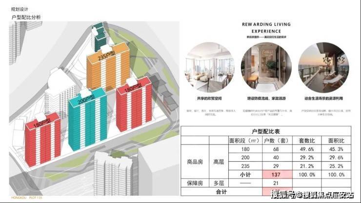 整个小区共有137套房源,户型分为180平、200平和235平三种,均为四房两厅三卫设计,全装修房。户型分布: