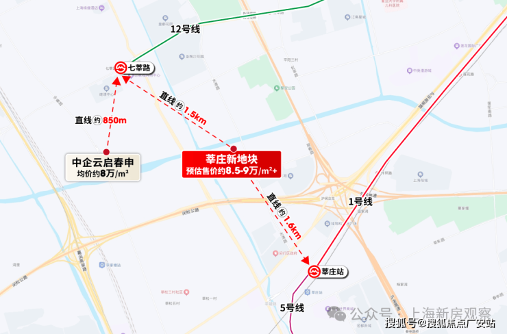 莘庄板块近两年只有保利建工海玥锦上、中企云启春申两个新盘,均在莘庄商务区,售价在8万左右。
