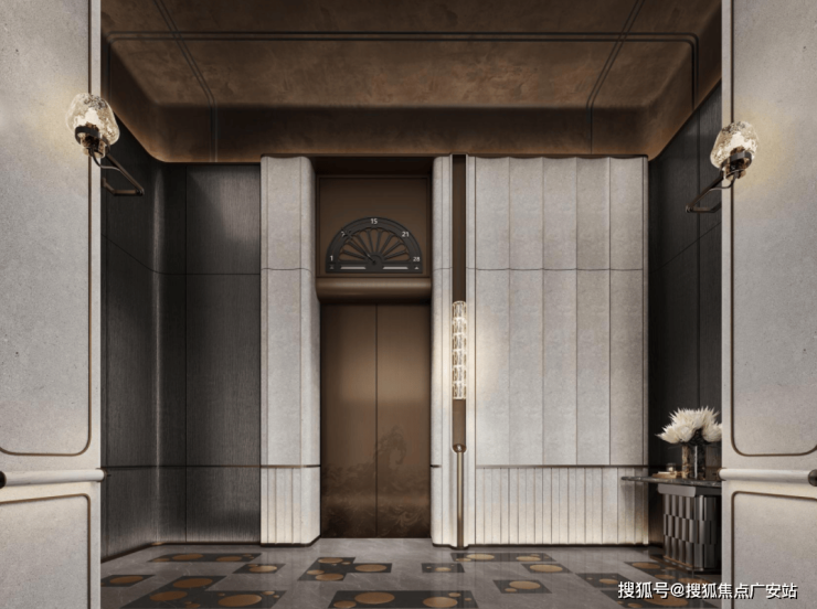 电梯厅的宠物识别按钮是艺术家定制款;入户门把手出自艺术家刘建华之手,用整块实心铜锭经锻造、打磨、电镀等多道精密工艺制成,握住的瞬间就是与艺术的触碰。