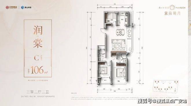 户型:主推建面94–112㎡的三居室、四居室精装住宅。