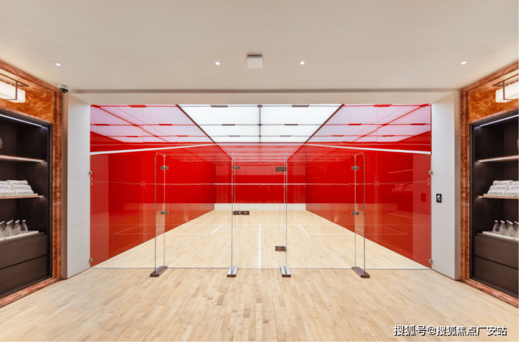 壁球馆用鲜亮的米兰红石材作为背景,营造非常时尚的运动风。