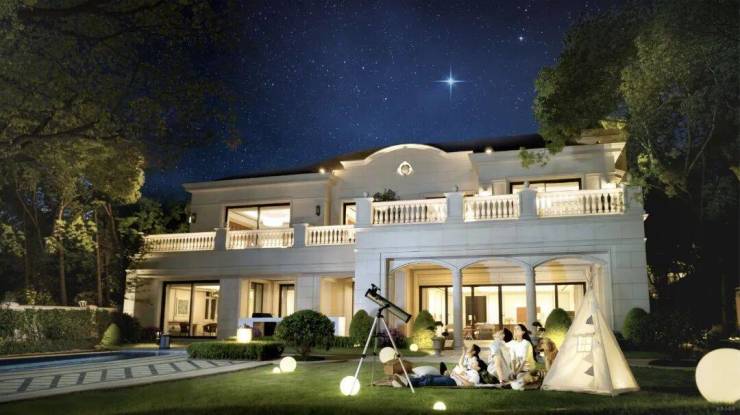 【绿宝园·翡梵】整体占地面积约6.6万方,由38栋建面约700-850㎡法式独栋庄园别墅组成,对应的是约1.5-2亩的占地面积,每个业主能享受超大花园带来的浪漫生活。