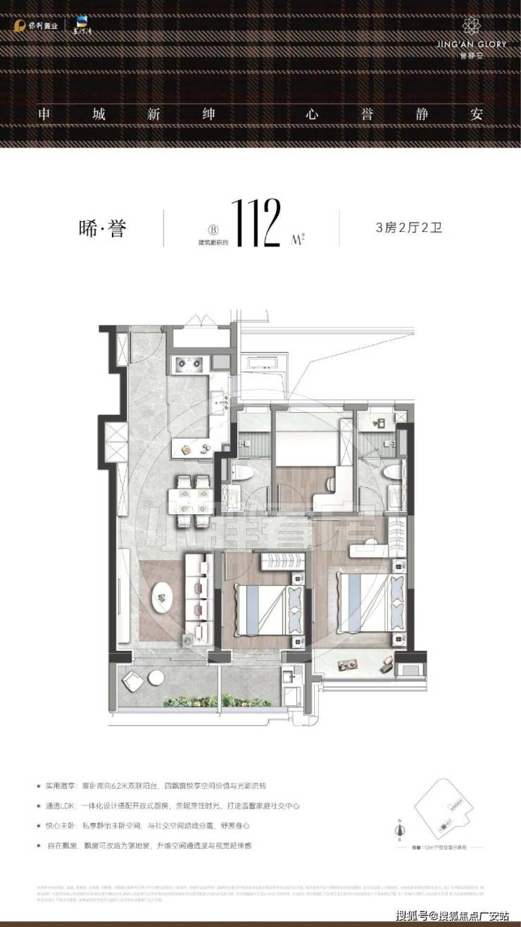 核心优势:双央企背书,交付有保障;静安内环少有的千万级新盘;近地铁+苏河湾规划利好;精装标准对标高端豪宅;会所与泛会所配置齐全