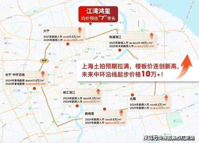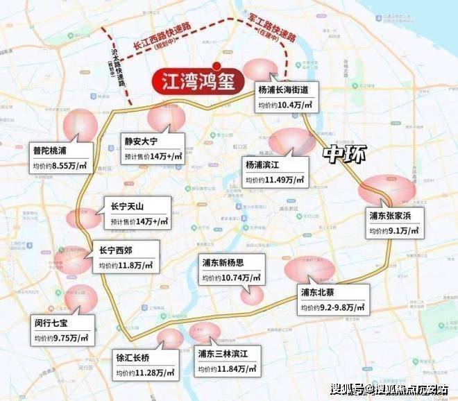 再来看中环沿线新房价格当前的格局。规划强势的如徐汇长桥,三林滨江,静安大宁,杨浦滨江等,价格全面突破11万+/㎡。