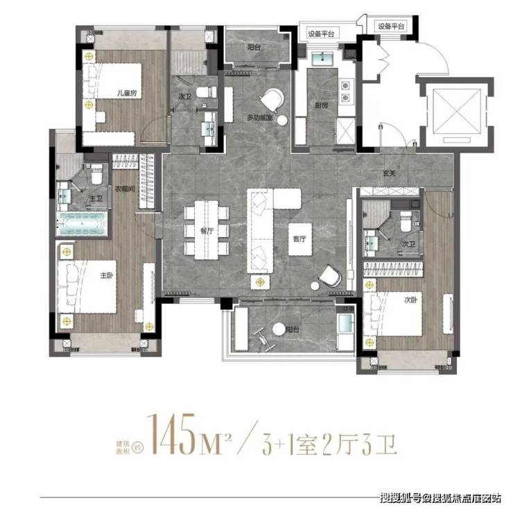 建面约145m²户型图
