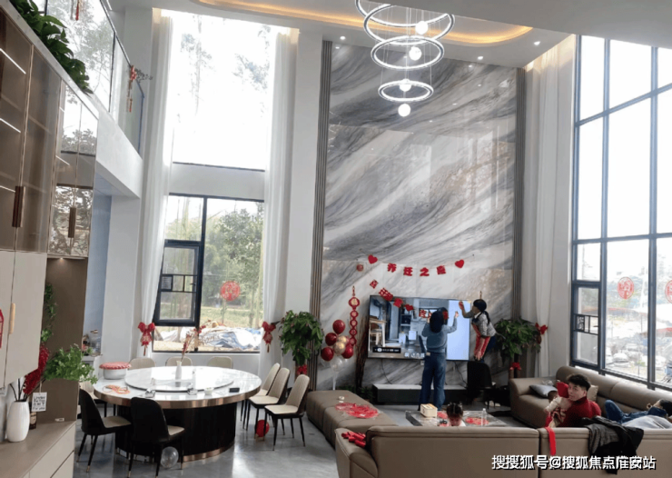 刚刚说了,房子的客厅是二层中空的设计,我们看看装修效果。