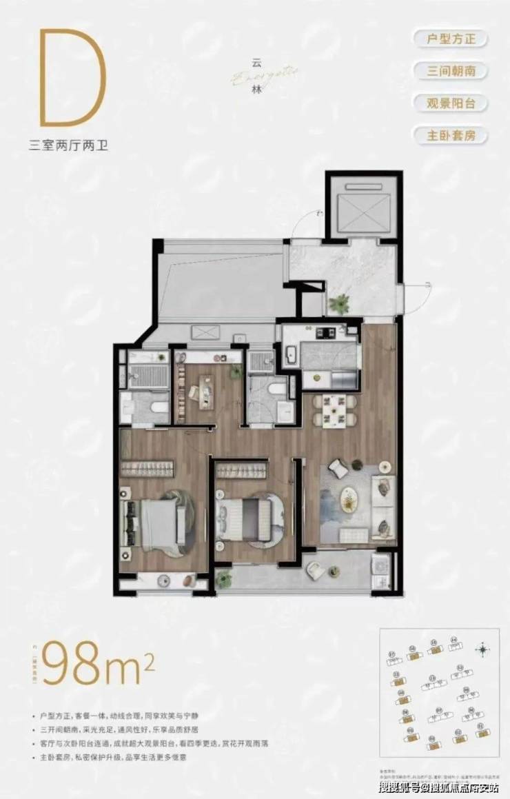 ①先看建面约98㎡D户型