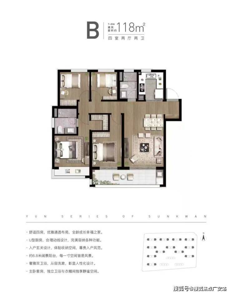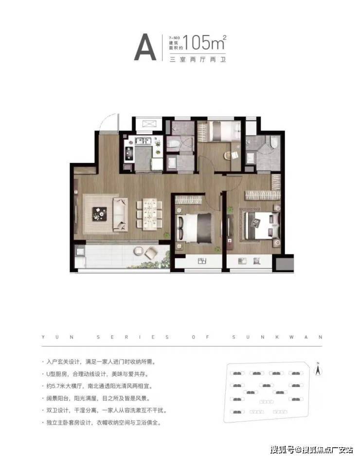 板块最优户型:105,三房两厅两卫