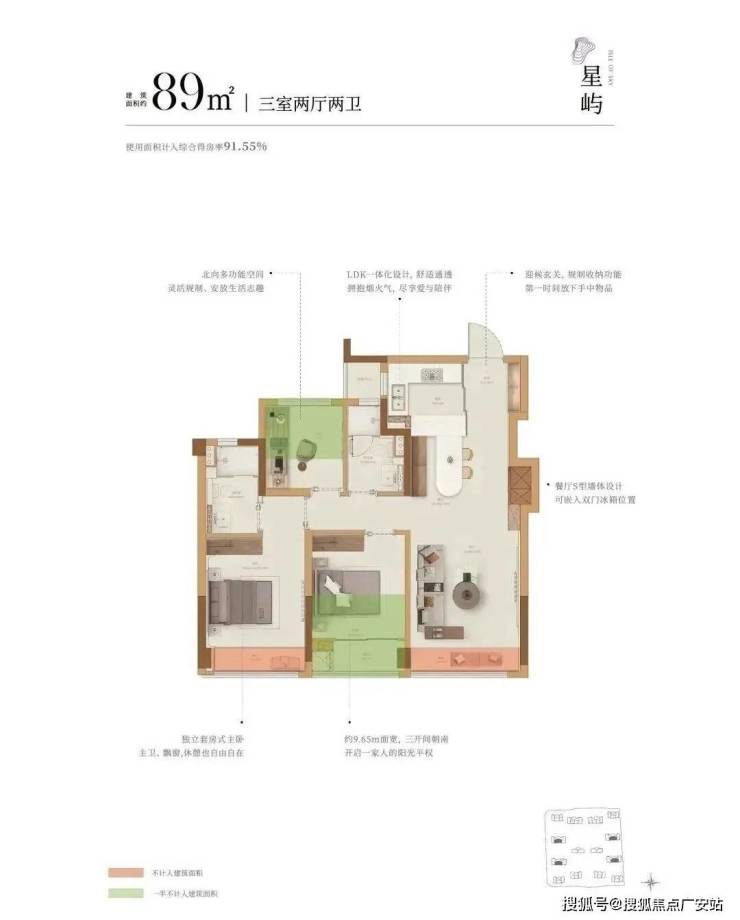 建面约89-104方的三房、建面约115-132方的四房,不仅有高颜值也有多功能。