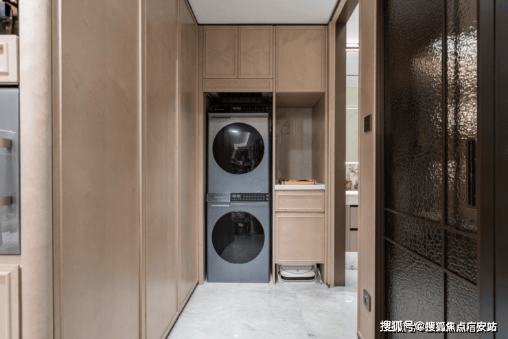 进门还设置一整排收纳柜,衣服、鞋子、行李箱等各种家用物品统统安排妥帖。