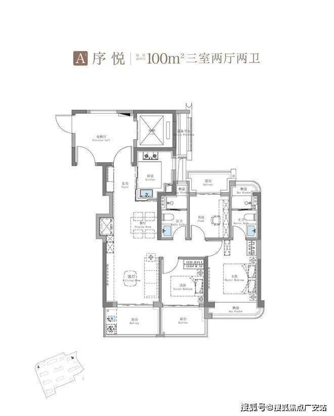 主卧豪华的套房设计,不仅南向有转角飘窗,甚至北侧卫浴都做了转角飘窗,空间延展度超强!