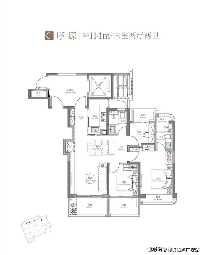 而且ta的次卧面积达到约14㎡,比豪宅大平层的次卧还大!
