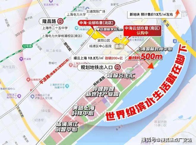 定位世界级科创中心,美团、B站、超级合生汇等地标综合体配套一街之隔,杨浦滨江核心商务区。