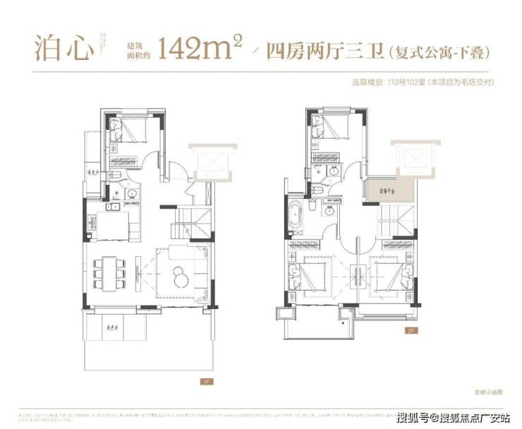 项目叠墅户型有建面约142㎡下叠,建面约139㎡上叠。