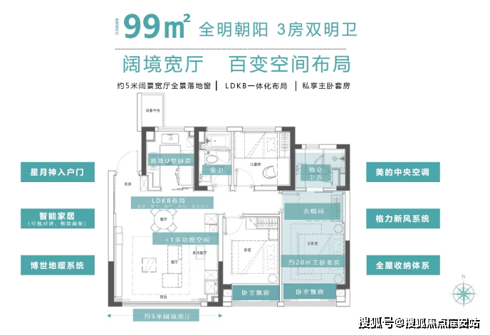 户型设计:建面约129㎡户型采用LDKB一体化布局,搭配6.2米宽厅和+1多功能空间;99㎡小高层为三室两卫,南北通透