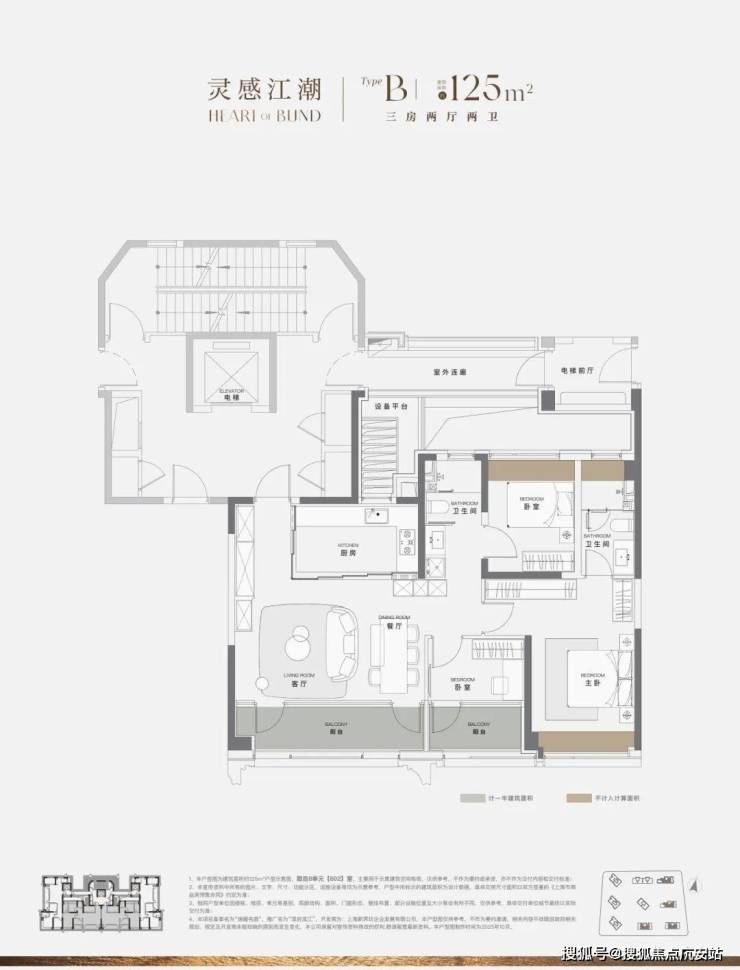 建面125㎡户型,这个户型的含金量和受欢迎程度不用多说,也是前期卖得非常火爆的小户型。
