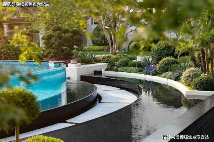 约280㎡的无界泳池,约1000㎡的中央草坪为中轴景观