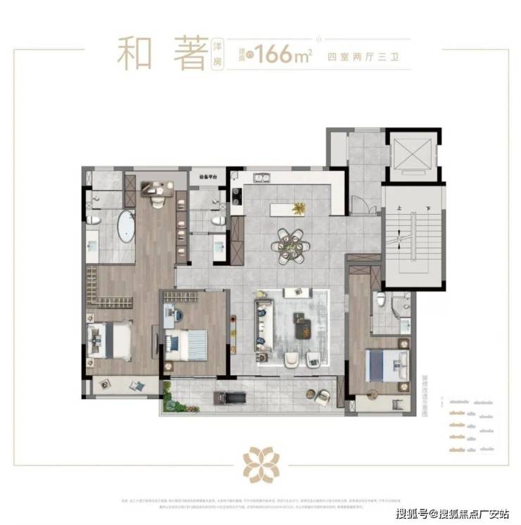 洋房:166㎡、195㎡(四室,含约7㎡私享前厅)